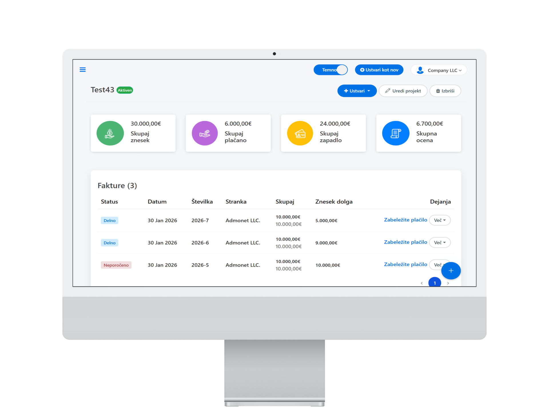 Spremljajte ponudbe in račune po projektih hitro, enostavno in zanesljivo.