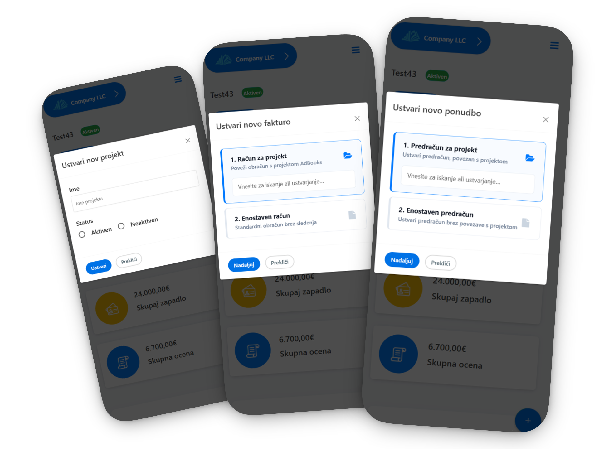 Vsak finančni dokument – ponudba, račun – je samodejno povezan z ustreznim projektom. Vse na enem mestu: